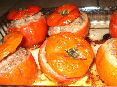 Se acomodan en una fuente para horno previamente aceitado. Se distribuye la manteca restante sobre cada tomate.